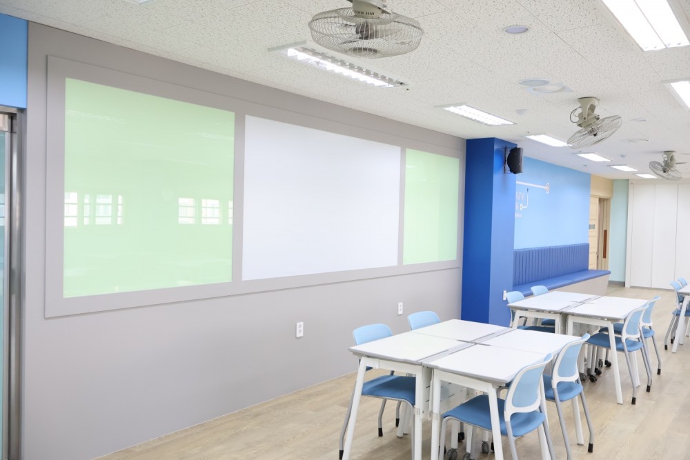 은가람중학교 AI창의 융합교실 시공사례 AI인공지능 교실 구축사례 https://blog.naver.com/PostView.naver?blogId=lifesong77&Redirect=View&… 작성일 : 2023-10-09 본문 안녕하세요~^은가람중학교 AI창의융합교실 시공사례 입니다. 밝은톤의 바닥타일 교체작업과 파스텔톤의 도장과 전면부 목공작업을 진행하였습니다. 교실 뒤편의 수납공간은 선생님의 요구사항으로 아실만한 대기업브랜드 제품으로 작업을하였습니다. 책상 및 의자도 새롭게 교체를 하였고 전자칠판과 입.좌식형 전자교탁까지 세팅을 하고보니교실의 구성이 완벽하게 조화를 이루는 것 같아서 모두들 만족을 하십니다~교실 뒤쪽공간은 양옆으로 편하게 앉아서 토론을 하거나 책을 볼 수 있은 공간으로 구성을 하였습니다. 작업전 디자인 시안 입니다. 목록 다음글왕남초등학교 AI 인공지능 교실 시공 사례 23.09.16